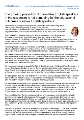 The growing proportion of non-native English speakers in the classroom is not damaging for the educational outcomes of native English speakers
