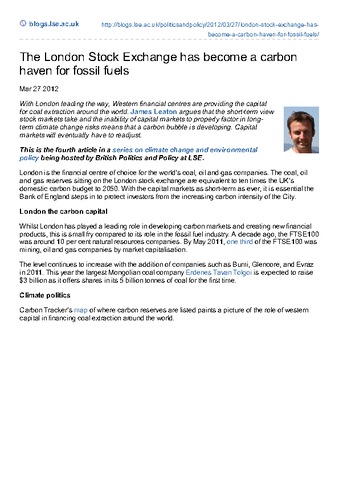 The London Stock Exchange has become a carbon haven for fossil fuels