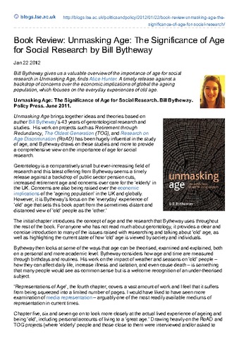 Book review: unmasking age: the significance of age for social research by Bill Bytheway