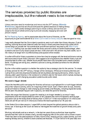 The services provided by public libraries are irreplaceable, but the network needs to be modernised