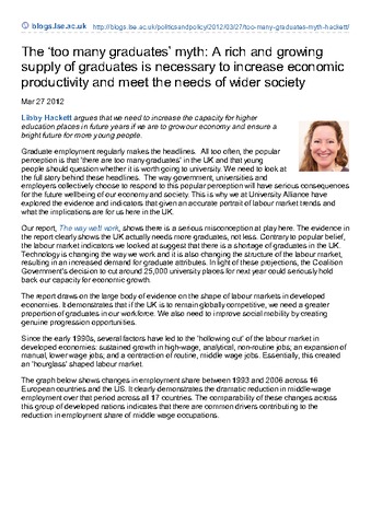 The ‘too many graduates’ myth: a rich and growing supply of graduates is necessary to increase economic productivity and meet the needs of wider society.