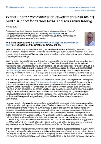 Without better communication governments risk losing public support for carbon taxes and emissions trading.