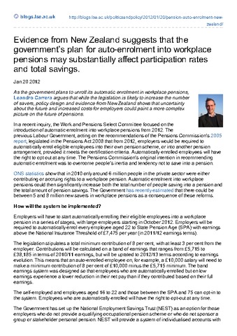 As the government plans to unroll its automatic enrolment in workplace pensions, Leandro Carrera argues that while the legislation is likely to increase the number of savers, policy design and evidence from New Zealand shows that uncertainty about the future and increased costs for employers could paint a more complex picture on the future of pensions.