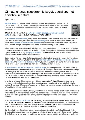 Adam Corner argues that social views and cultural beliefs predict climate change denial, and not people’s level of knowledge about climate science. The crux of the climate debate, therefore, lies in untangling the competing visions of how people see the world.