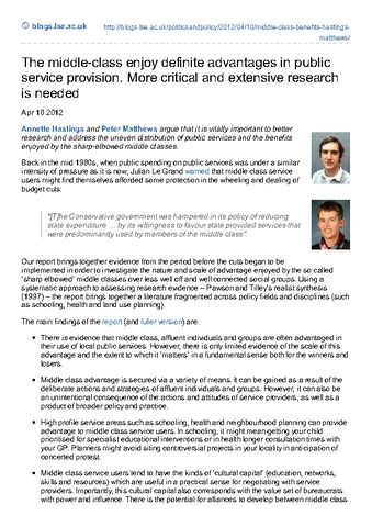 The middle-class enjoy definite advantages in public service provision. More critical and extensive research is needed