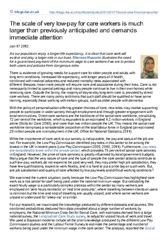 As our population enjoy a longer life expectancy, it is clear that care work will evolve and play a larger role in our lives. Shereen Hussein illustrates the need for a guaranteed payment of the minimum wage to care workers if we are to protect both users and policies from dangerous risks.