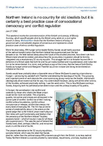 This weekend marks the commemoration of the fortieth anniversary of Bloody Sunday, which saw 26 people shot by the British army while on a civil rights march in Derry. Michael Kerr finds that the Northern Ireland of today is governed with a remarkable degree of consensus and represents a best practice case of ethnic conflict regulation.