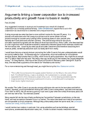 Arguments linking a lower corporation tax to increased productivity and growth have no basis in reality