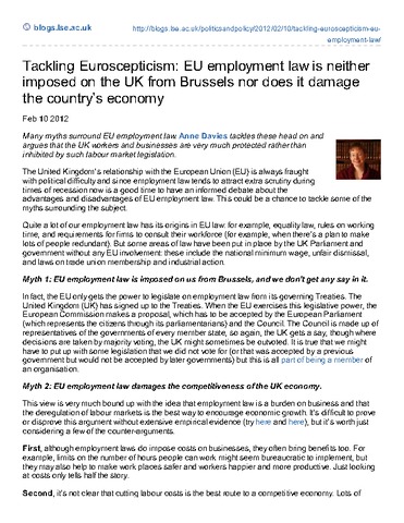 Tackling Euroscepticism: EU employment law is neither imposed on the UK from Brussels nor does it damage the country’s economy