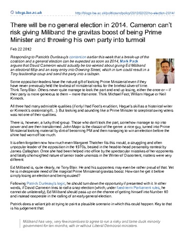 - http://blogs.lse.ac.uk/politicsandpolicy/2012/02/22/no-election-2014/ (Publisher)