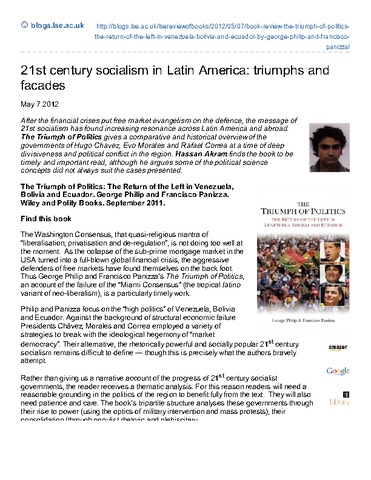 Book review: 21st century socialism in Latin America: triumphs and facades