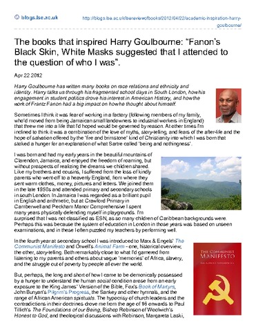 Book review: the books that inspired Harry Goulbourne: “Fanon’s black skin, white masks suggested that I attended to the question of who I was”