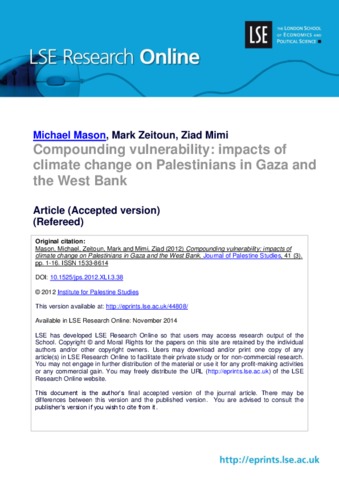 Compounding vulnerability: impacts of climate change on Palestinians in Gaza and the West Bank