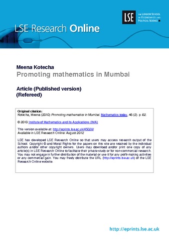Promoting mathematics in Mumbai