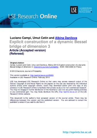 | Keywords | Dynamic Bessel bridge,enlargement of filtrations,filtering,martingale problems,insider trading |