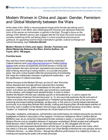 Modern women in China and Japan: gender, feminism and global modernity between the wars.