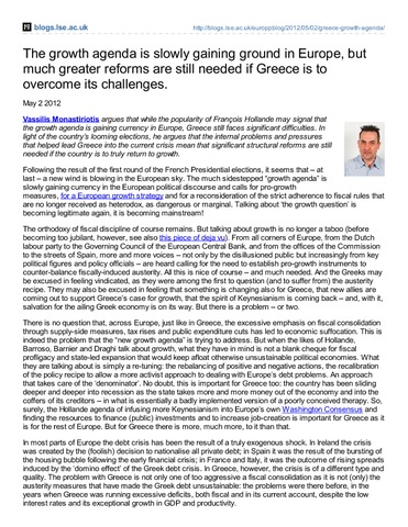 Vassilis Monastiriotis argues that while the popularity of François Hollande may signal that the growth agenda is gaining currency in Europe, Greece still faces significant difficulties. In light of the country’s looming elections, he argues that the internal problems and pressures that helped lead Greece into the current crisis mean that significant structural reforms are still needed if the country is to truly return to growth.