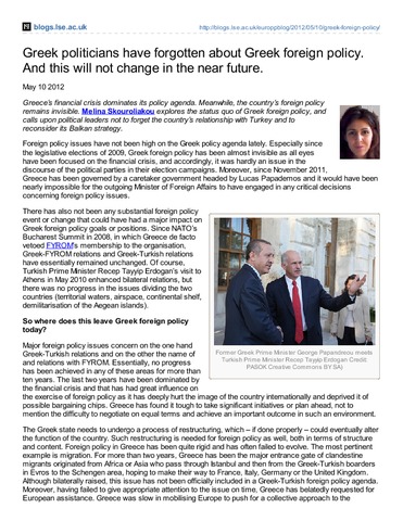 - http://blogs.lse.ac.uk/europpblog/2012/05/10/greek-foreign-policy/ (Publisher)