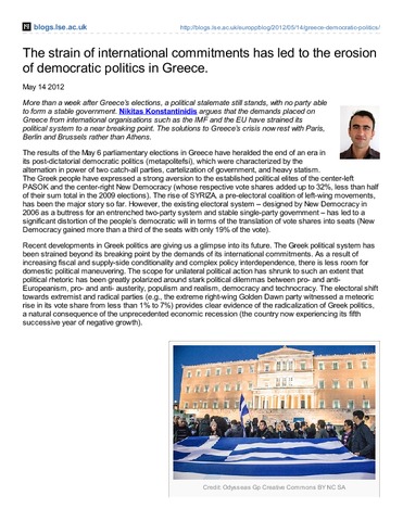The strain of international commitments has led to the erosion of democratic politics in Greece