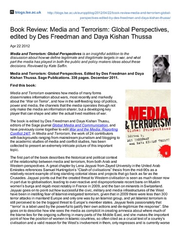 Book review: media and terrorism: global perspectives, edited by Des Freedman and Daya Kishan Thussa