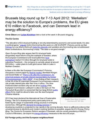 Brussels blog round up for 7-13 April 2012: ‘Merkelism’ may be the solution to Europe’s problems, the EU gives €10 million to Facebook, and can Denmark lead in energy efficiency?