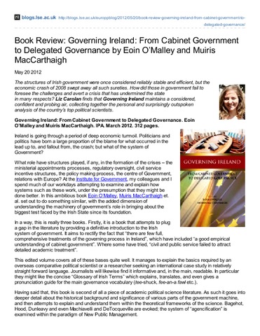 Book review: Governing Ireland: from cabinet government to delegated governance by Eoin O’Malley and Muiris MacCarthaigh