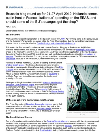 Brussels blog round up for 21-27 April 2012: Hollande comes out in front in France, ‘ludicrous’ spending on the EEAS, and should some of the EU’s quangos get the chop?