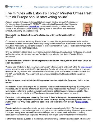 Five minutes with Estonia’s Foreign Minister Urmas Paet: “I think Europe should start voting online”.