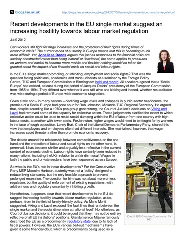 Recent developments in the EU single market suggest an increasing hostility towards labour market regulation.