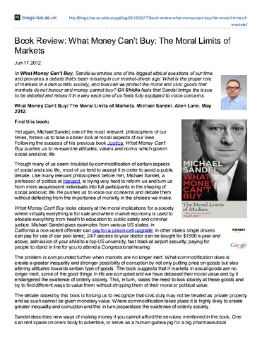 In What Money Can’t Buy, Sandel examines one of the biggest ethical questions of our time and provokes a debate that’s been missing in our market-driven age: What is the proper role of markets in a democratic society, and how can we protect the moral and civic goods that markets do not honour and money cannot buy? Gil Shidlo feels that Sandel brings the issue to be debated and raises it in a way each one of us feels fully equipped to voice concerns.
