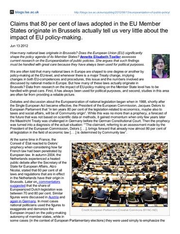 Claims that 80 per cent of laws adopted in the EU Member States originate in Brussels actually tell us very little about the impact of EU policy-making