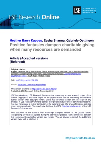 Positive fantasies dampen charitable giving when many resources are demanded