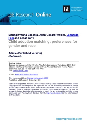 Baccara, Mariagiovanna; Collard-Wexler, Allan; Felli, Leonardo; and Yariv, Leeat