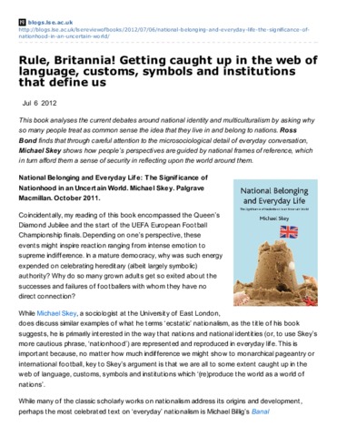 This book analyses the current debates around national identity and multiculturalism by asking why so many people treat as common sense the idea that they live in and belong to nations. Ross Bond finds that through careful attention to the microsociological detail of everyday conversation, Michael Skey shows how people’s perspectives are guided by national frames of reference, which in turn afford them a sense of security in reflecting upon the world around them. National Belonging and Everyday Life: The Significance of Nationhood in an Uncertain World. Michael Skey. Palgrave Macmillan. October 2011.