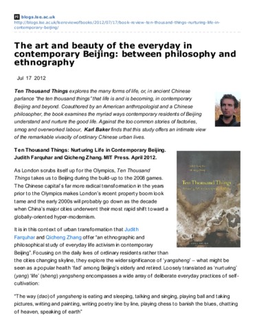 Book review: the art and beauty of the everyday in contemporary Beijing: between philosophy and ethnography