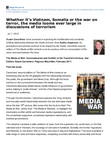 Susan Carruthers‘ book succeeds in exposing the multifaceted and constantly shifting relationship between the media and war, finds Sasha Jesperson. As perceptions and policies continue to be shaped by the media, Carruthers second edition of The Media at War reminds us to be cautious with our consumption of the news and read between the lines. The Media at War: Communication and Conflict in the Twentieth Century. 2nd Edition. Susan Carruthers. Palgrave Macmillan. February 2011.