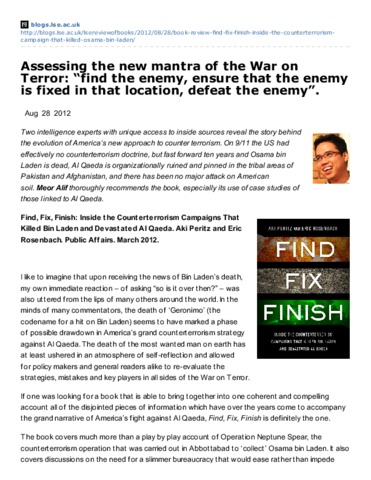 Book review: assessing the new mantra of the War onTerror: “find the enemy, ensure that the enemyis fixed in that location, defeat the enemy”