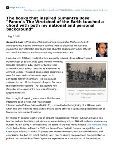Book review: The books that inspired Sumantra Bose:“Fanon’s The Wretched of the Earth touched achord with both my national and personalbackground”