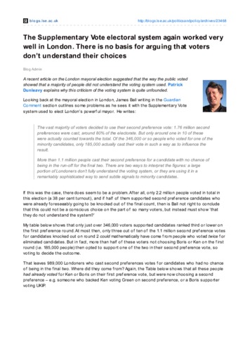 A recent article on the London mayoral election suggested that the way the public voted showed that a majority of people did not understand the voting system used. Patrick Dunleavy explains why this criticism of the voting system is quite unfounded.