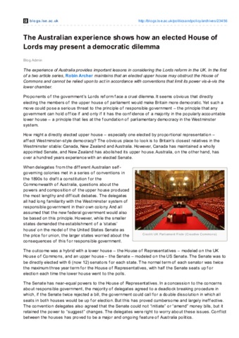 The Australian experience shows how an elected House of Lords may present a democratic dilemma