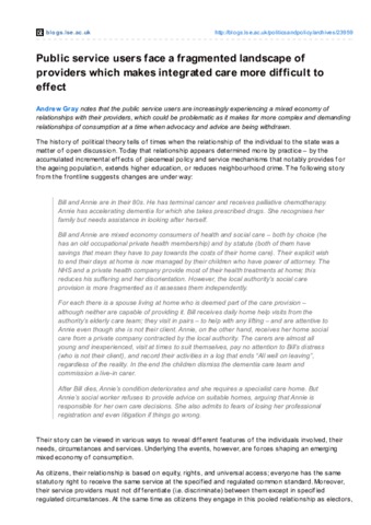 Andrew Gray notes that the public service users are increasingly experiencing a mixed economy of relationships with their providers, which could be problematic as it makes for more complex and demanding relationships of consumption at a time when advocacy and advice are being withdrawn.