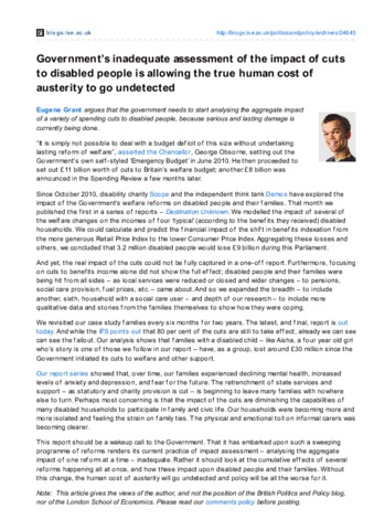 Government’s inadequate assessment of the impact of cuts to disabled people is allowing the true human cost of austerity to go undetected.