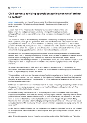James Lloyd explains why it should be a no-brainer for civil servants to advise political parties in opposition if it helps to avoid potential policy disasters and the future waste of public money.