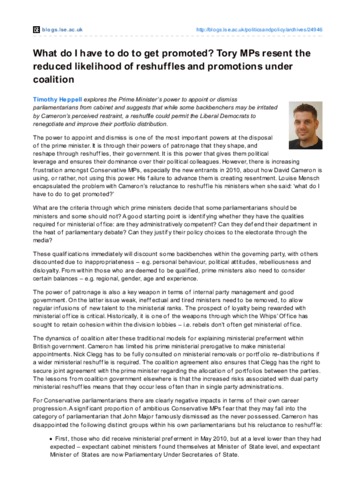 What do I have to do to get promoted? Tory MPs resent the reduced likelihood of reshuffles and promotions under coalition