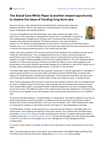 The Social Care White Paper is another missed opportunity to resolve the issue of funding long term care.
