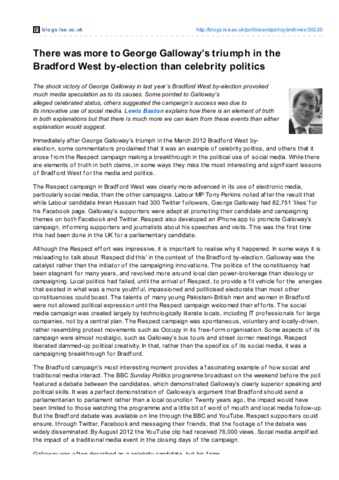 The shock victory of George Galloway in last year’s Bradford West by-election provoked much media speculation as to its causes. Some pointed to Galloway’s alleged celebrated status, others suggested the campaign’s success was due to its innovative use of social media. Lewis Baston explains how there is an element of truth in both explanations but that there is much more we can learn from these events than either explanation would suggest.