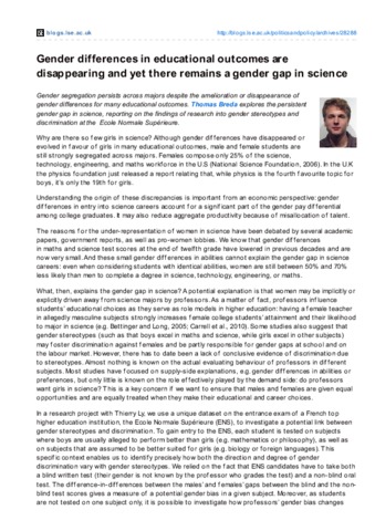 Gender differences in educational outcomes are disappearing and yet there remains a gender gap in science