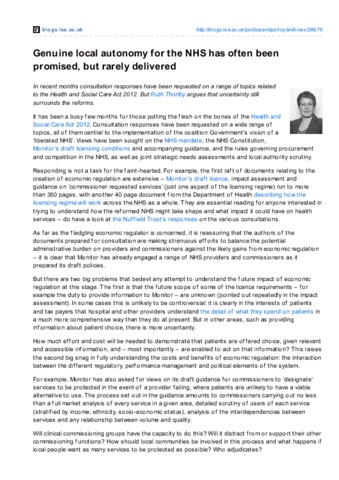 Genuine local autonomy for the NHS has often been promised, but rarely delivered