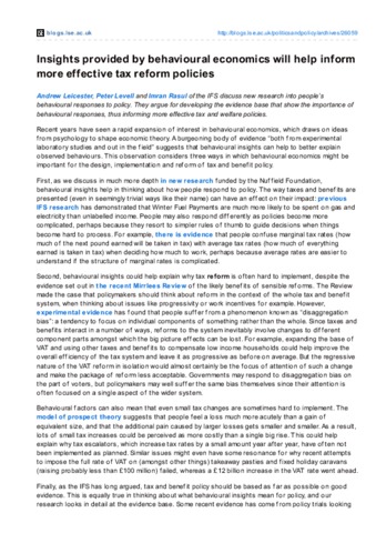 Insights provided by behavioural economics will help inform more effective tax reform policies