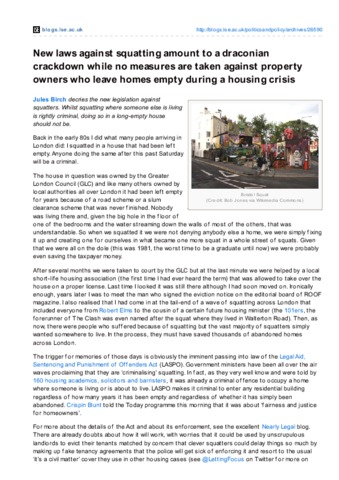 Jules Birch decries the new legislation against squatters. Whilst squatting where someone else is living is rightly criminal, doing so in a long-empty house should not be.